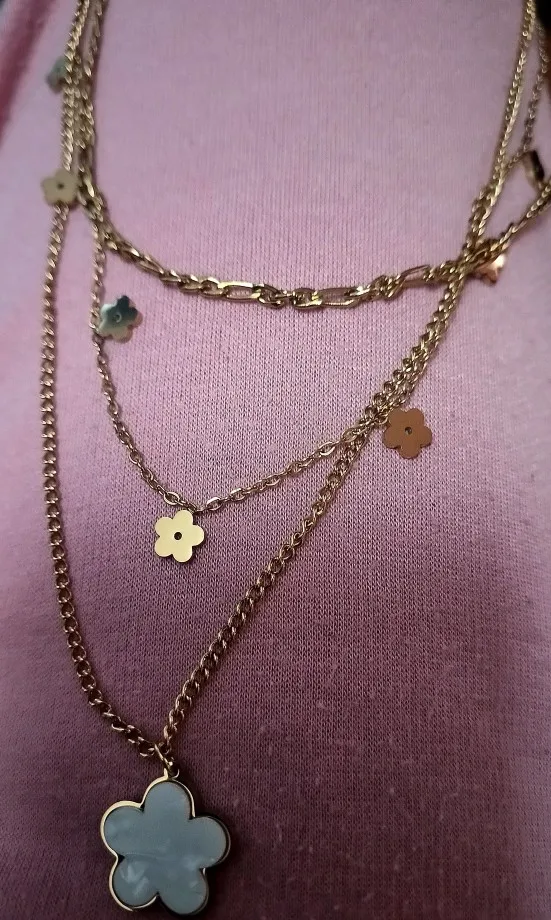 The triple chain necklace is beautiful, it's just that the chains don't seem like steel, they are very light. I hope I'm wrong because the necklace is for sale and I need to gain more customers for my accessories. The design is identical to the photo in the publication, very exact.
